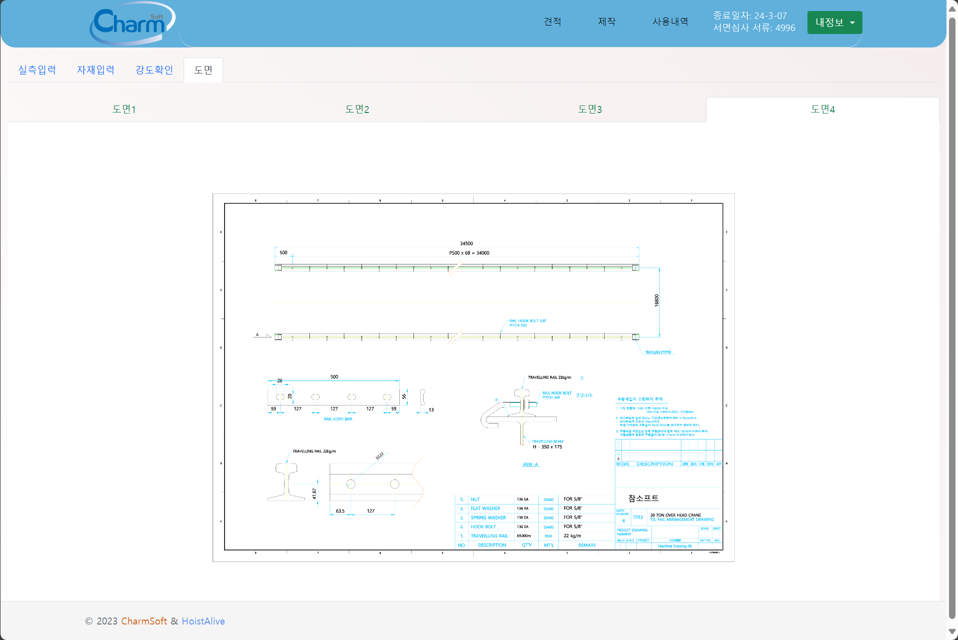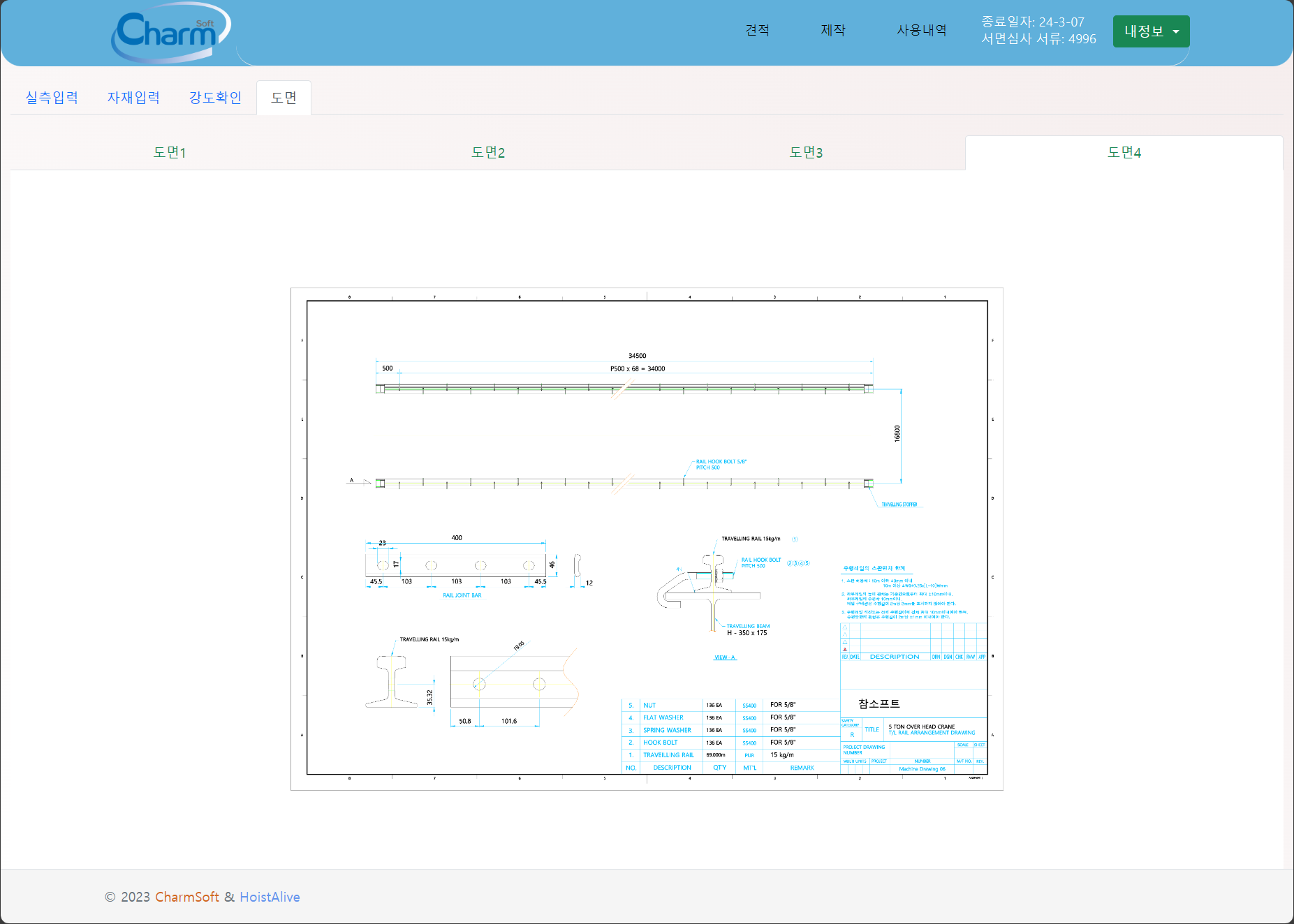 천정형 크레인 강도계산 프로그램을 출시하기에 앞서 특정회수만큼 사용해 볼 수 있습니다.